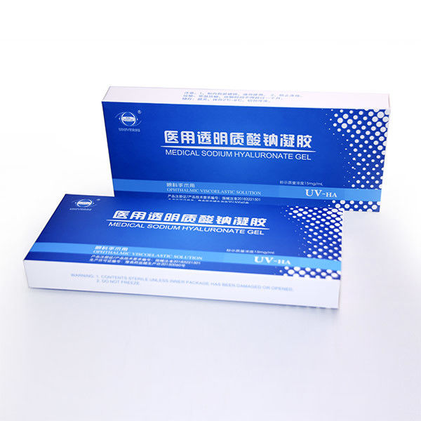 1,5% el gel oftálmico 1.5ml de Hyaluronate del sodio es una preparación estéril, nonpyrogenic, viscoelástica de una fracción altamente purificada, noninflammatory, de molecularidad elevada del peso del hyaluronate del sodio. Podría actuar como el llenador para mantener la profundidad de la cámara anterior. También puede proteger tejidos oculares, lubricar los dispositivos de la cirugía y reducir complicaciones después de la operación.